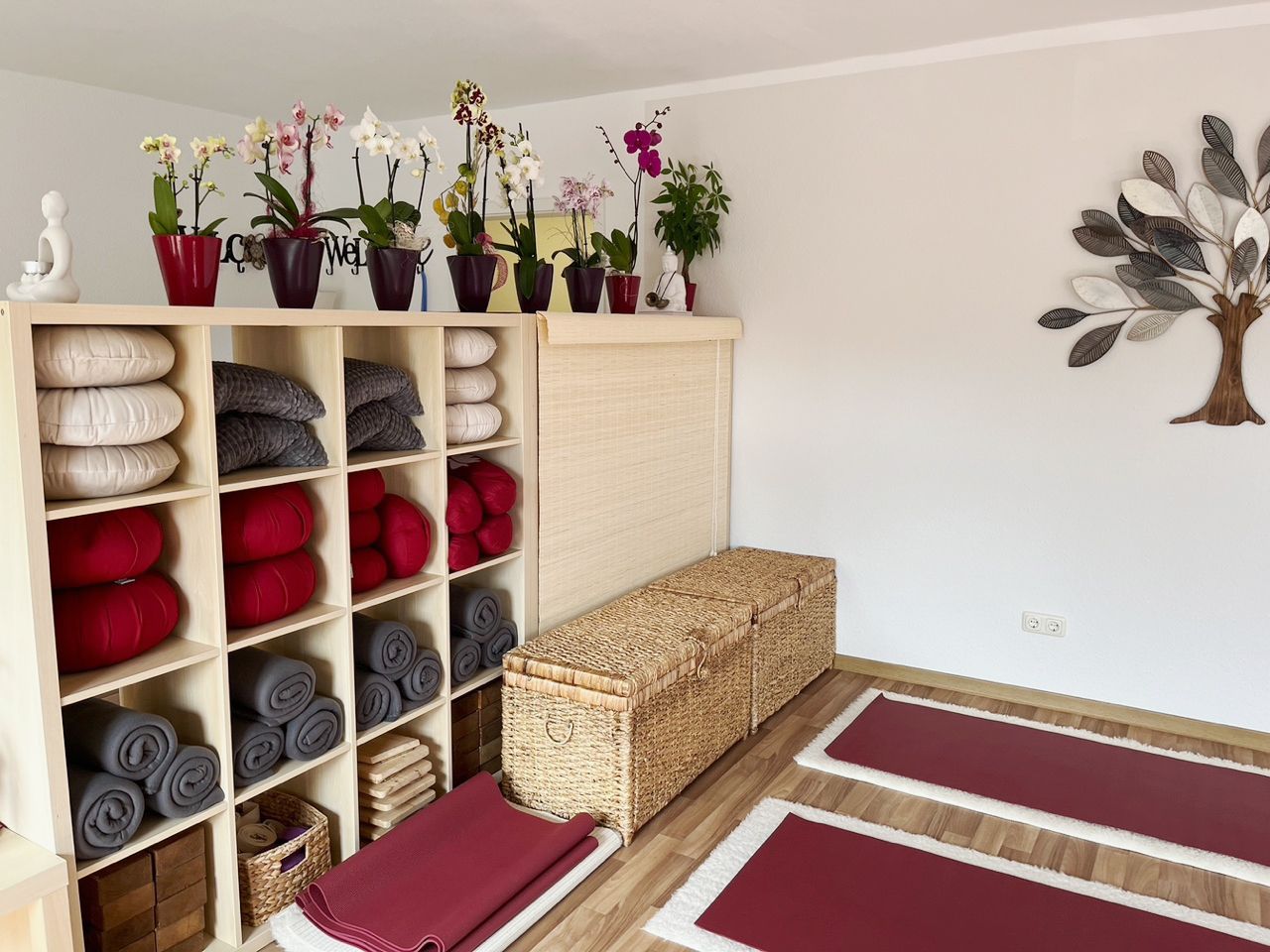 In meinem neu gestalteten Yogaraum biete ich Yoga in Wohlfühlatmosphäre an.